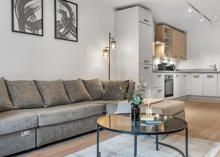 El Modern Luxury 1 Bed Apartment In Digbeth es un elegante refugio en el vibrante barrio bohemio de Digbeth. Este barrio es famoso por su arte urbano, donde murales como el mosaico curvado en homenaje a JFK dan vida a las calles. Aquí, disfrutarás de una experiencia única, rodeado de una mezcla creativa de cultura y modernidad.